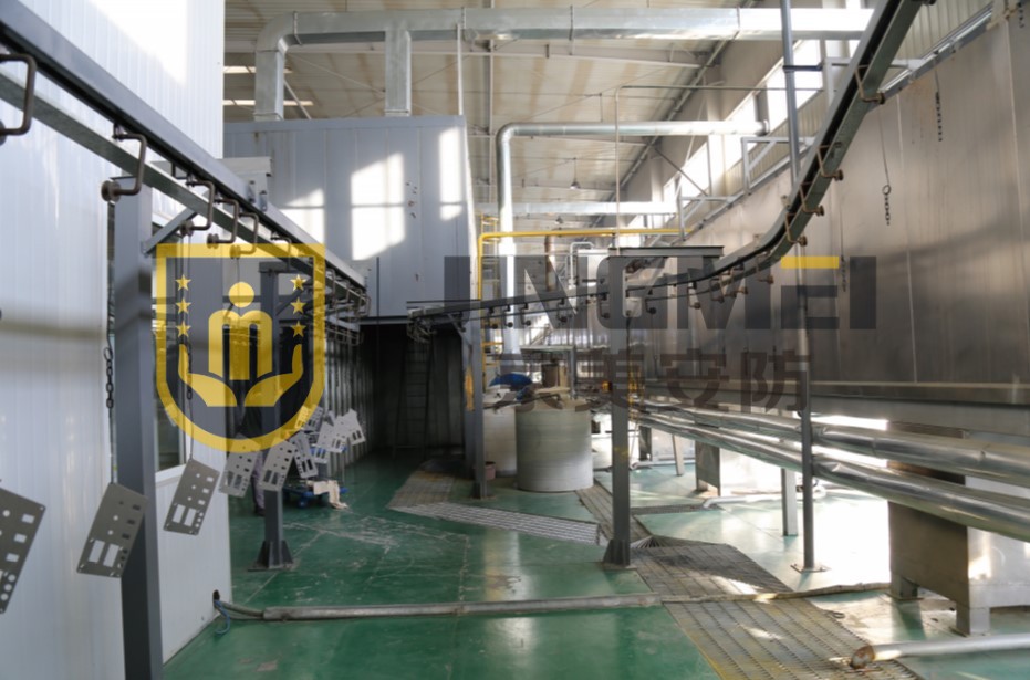 主要工藝步驟:除油、除銹、磷化、鈍化。工件經(jīng)前處理后不但表面沒有油、銹、塵,而且原來銀白色有光澤的表面上生成一層均勻而粗糙的不容易生銹的灰色磷化膜,既能防銹又能增加噴塑層的附著力。